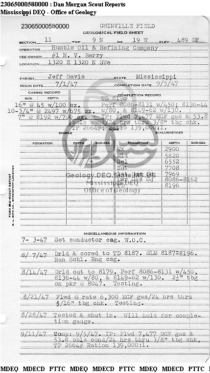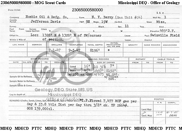 | 1 | 23065000580000 | EXXON CORPORATION -LA | GWINVILLE GU 24 | 1 | Production |