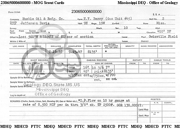 | 1 | 23065000600000 | EXXON CORPORATION -LA | GWINVILLE GU 45 | 1 | Production |
