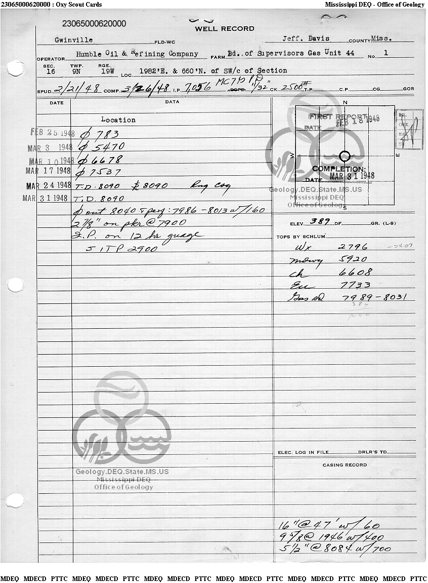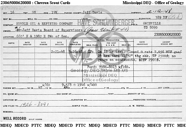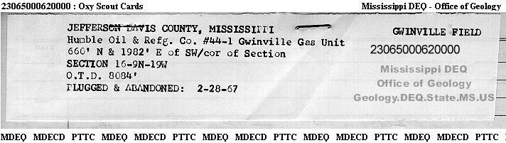 | 1 | 23065000620000 | GULF OIL CORP. | GWINVILLE G U 44 | 1 | Production |