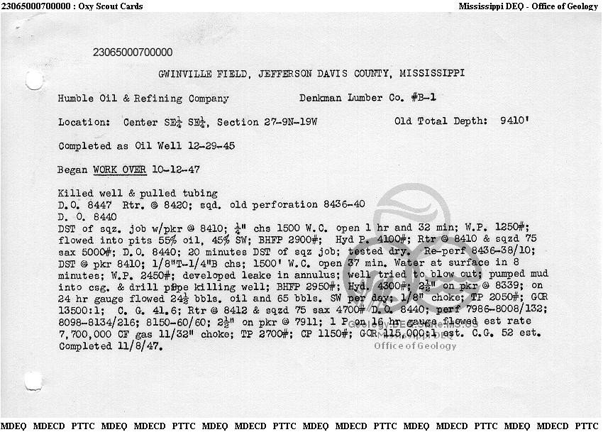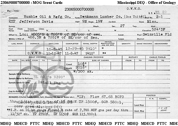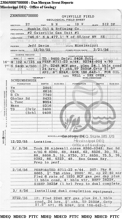 | 1 | 23065000700000 | EXXON CORPORATION -LA | GWINVILLE GU 2 | 1 | Oil Production |