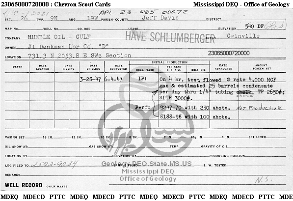 | 1 | 23065000720000 | HUMBLE OIL & REFINING CO. | GWINVILLE GU 3 | 1 | Production |