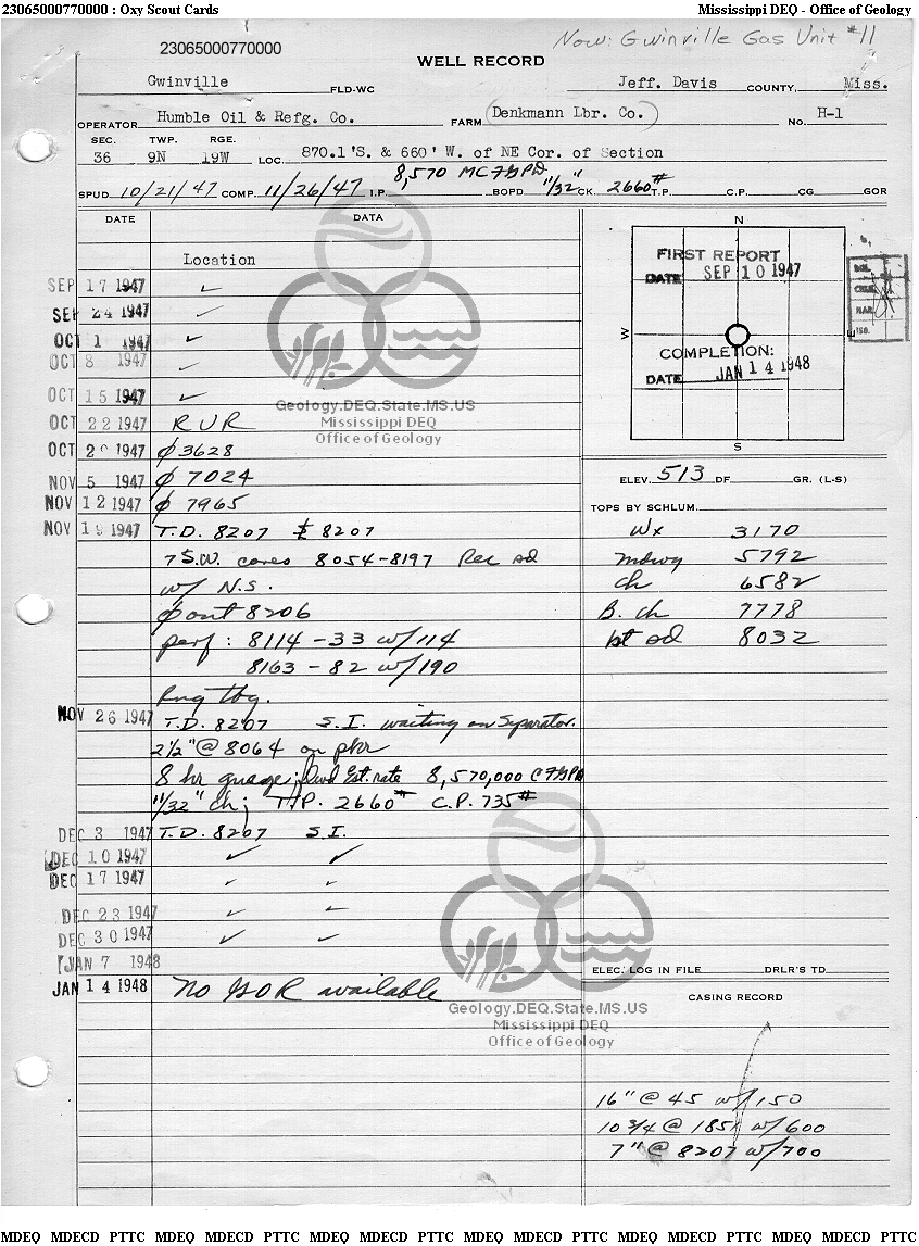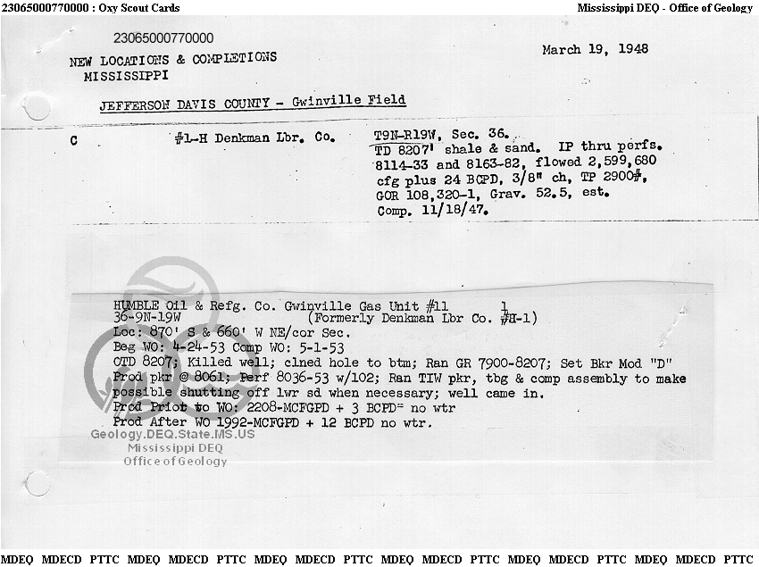 | 1 | 23065000770000 | HUMBLE OIL & REFINING CO. | GWINVILLE GU | 1 | Production |