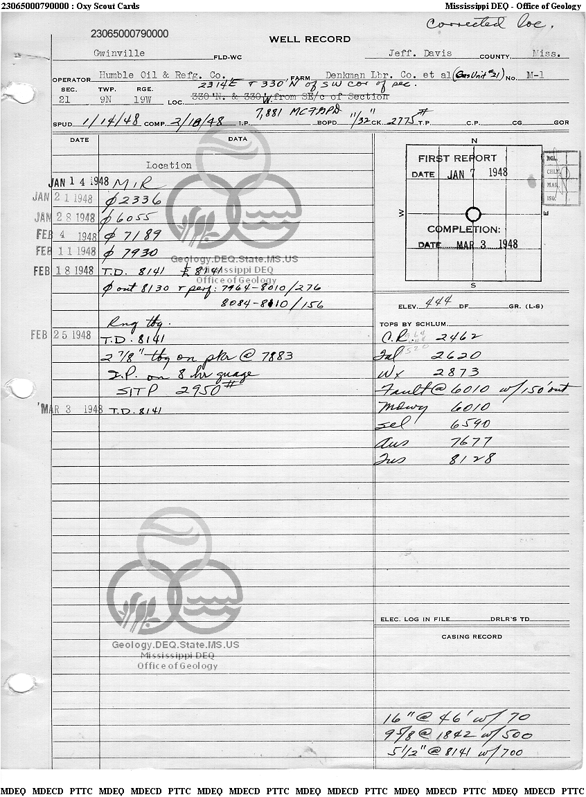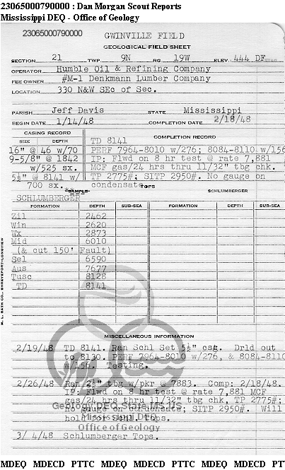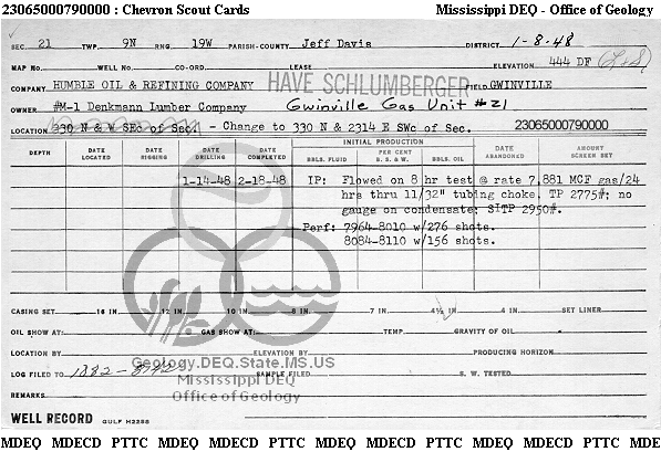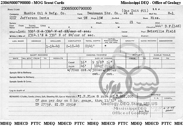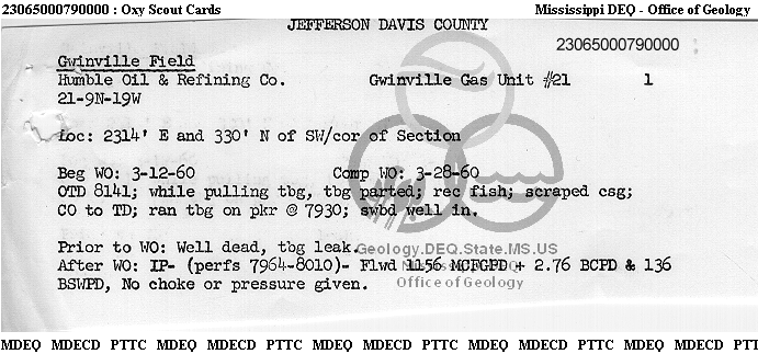 | 1 | 23065000790000 | EXXON CORPORATION -LA | GWINVILLE GAS UNIT 21 | 1 | Production |
