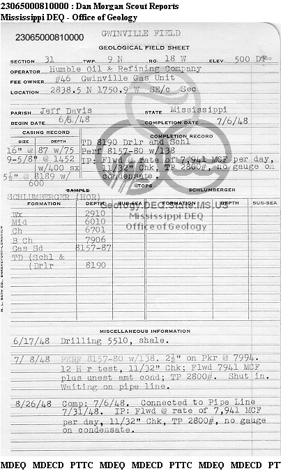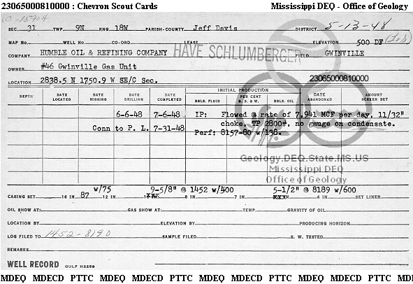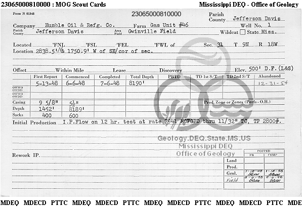 | 1 | 23065000810000 | HUMBLE OIL & REFINING CO. | GAS UNIT #46 | 1 | Production |