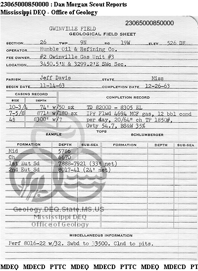 | 1 | 23065000850000 | EXXON CORPORATION -LA | GWINVILLE GU 3 | 2 | Production |
