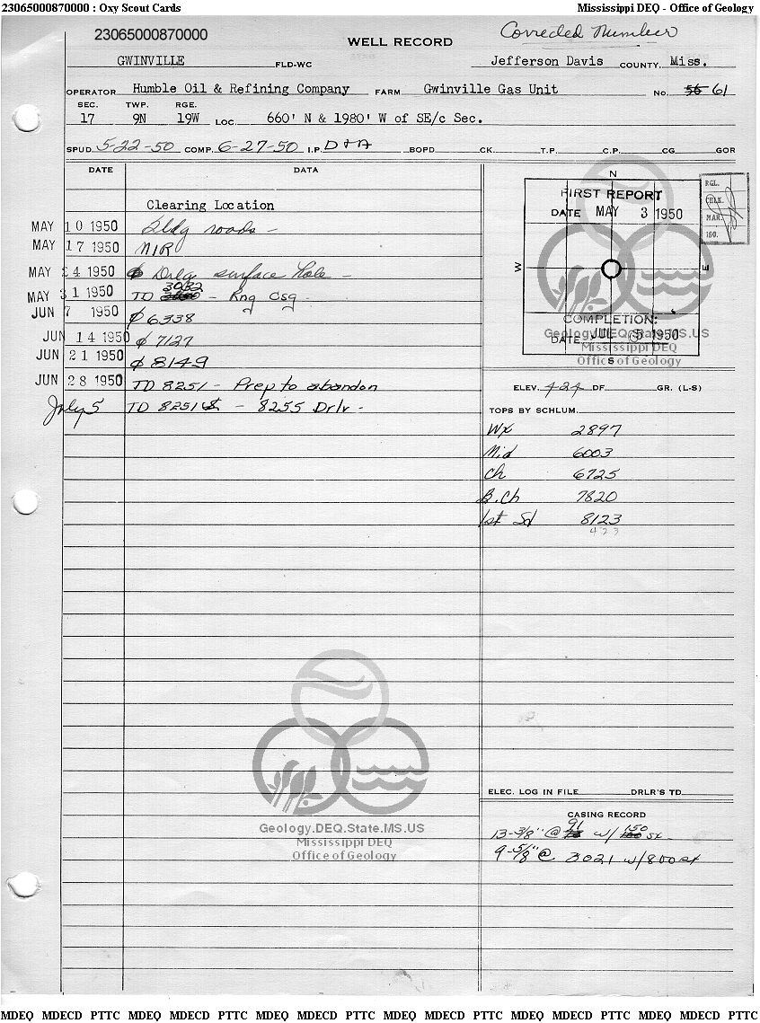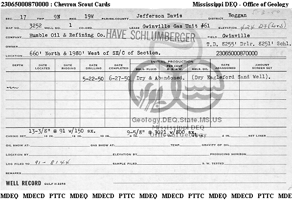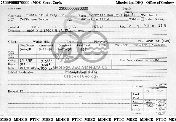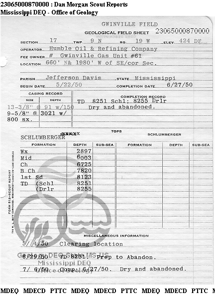 | 1 | 23065000870000 | HUMBLE OIL & REFINING CO. | GWINVILLE GU #61 | 1 | Dry Hole |