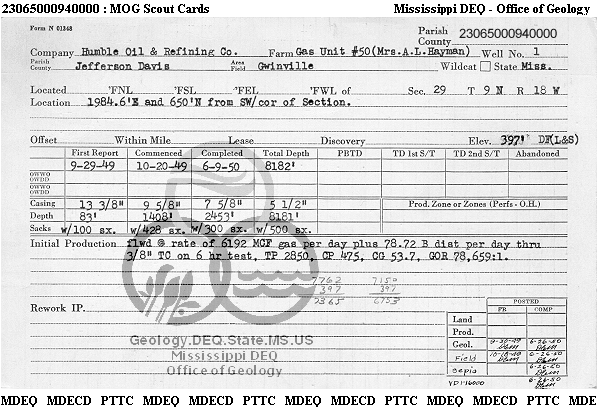 | 1 | 23065000940000 | HUMBLE OIL & REFINING CO. | GWINVILLE GU 50 | 1 | Production |