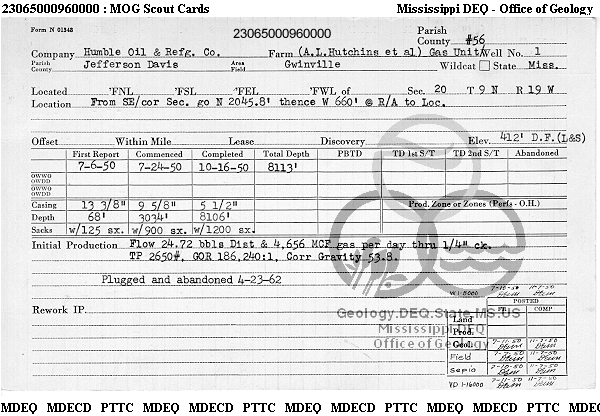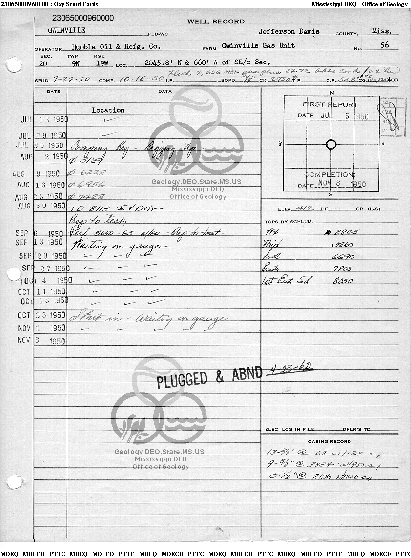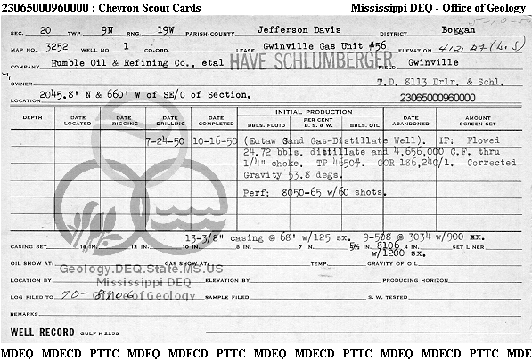 | 1 | 23065000960000 | HUMBLE OIL & REFINING CO. | GWINVILLE GU 56 | 1 | Production |