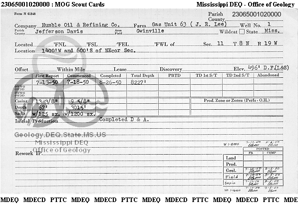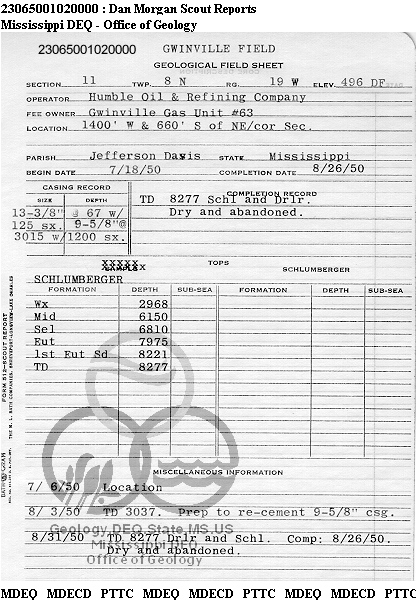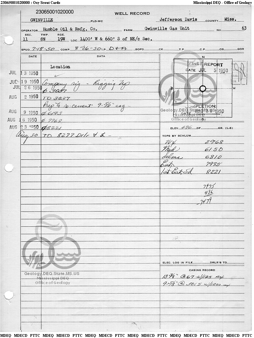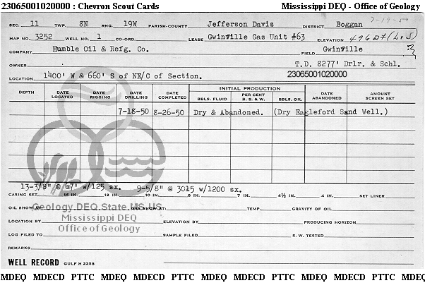 | 1 | 23065001020000 | HUMBLE OIL & REFINING CO. | GWINVILLE GU 63 | 1 | Dry Hole |