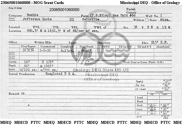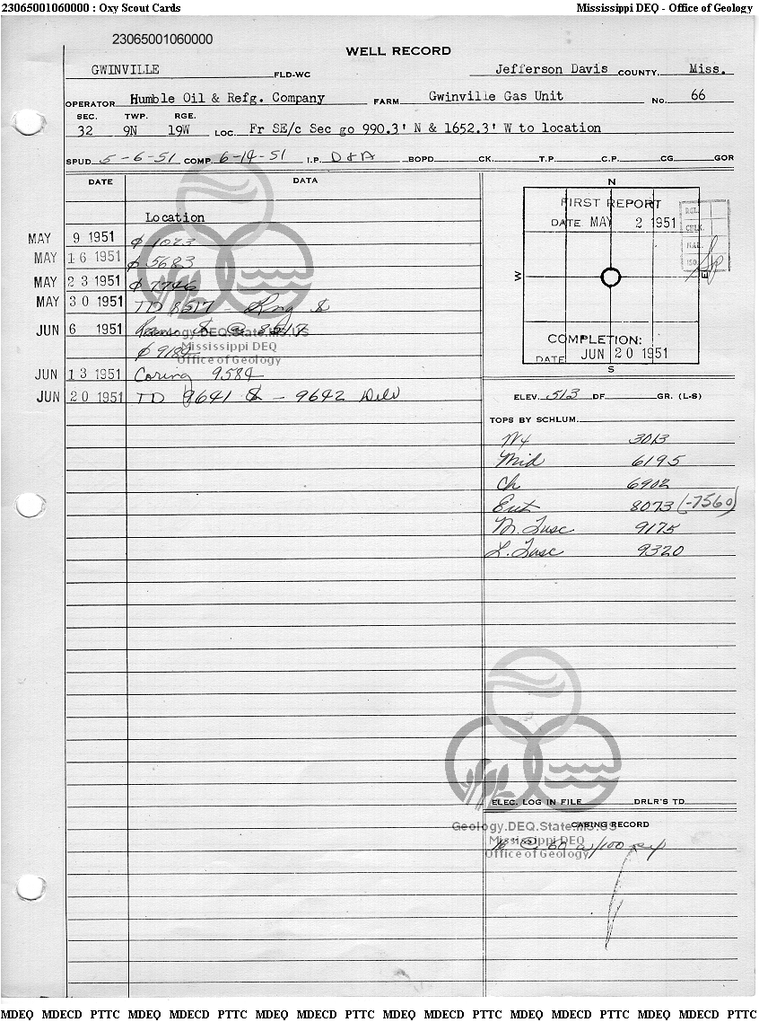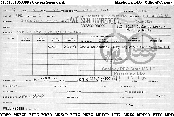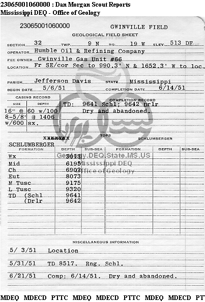 | 1 | 23065001060000 | HUMBLE OIL & REFINING CO. | GWINVILLE GU 66 | 1 | Dry Hole |