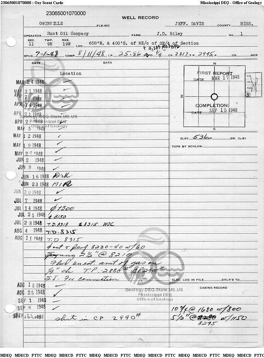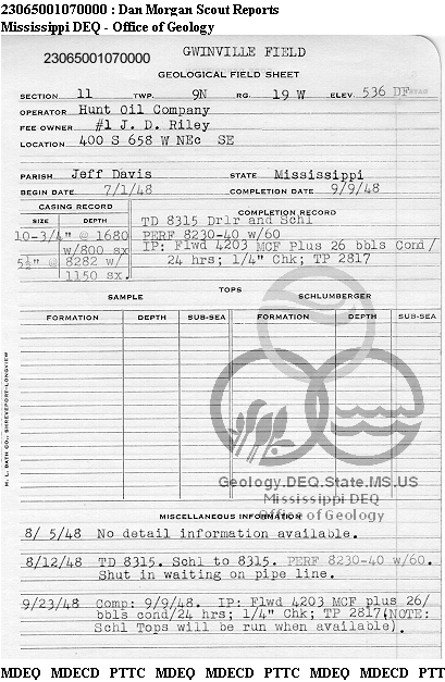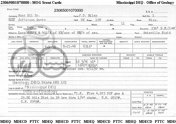 | 1 | 23065001070000 | HUNT OIL CO | J D RILEY | 1 | Production |
