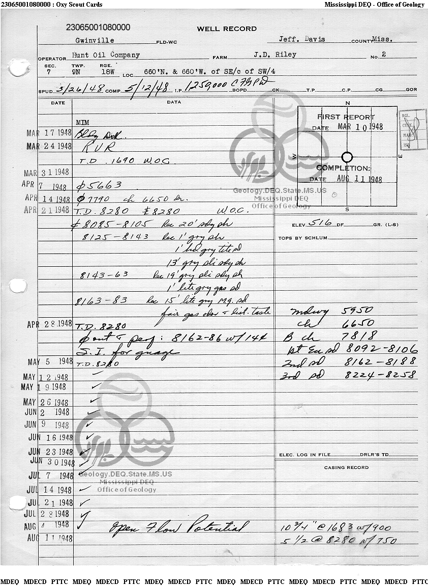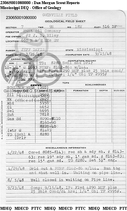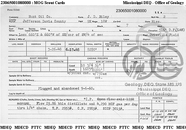 | 1 | 23065001080000 | HUNT OIL CO | J D RILEY | 2 | Production |