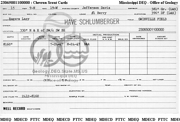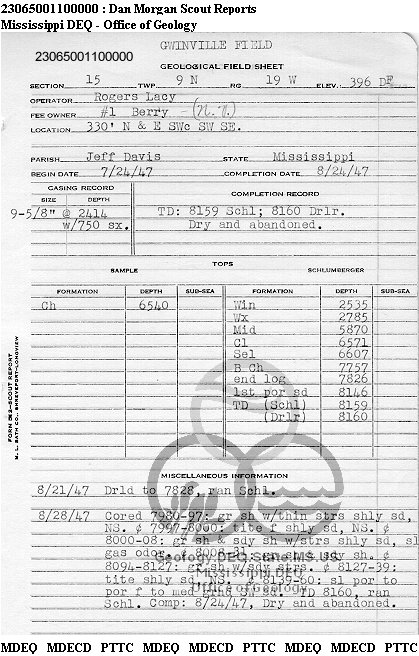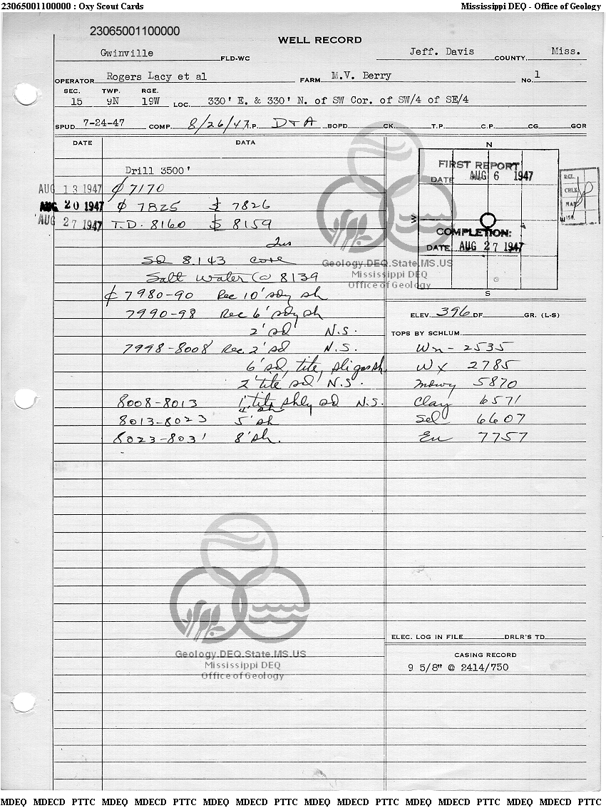| 1 | 23065001100000 | R. LACY, INC. | M V BERRY | 1 | Dry Hole |