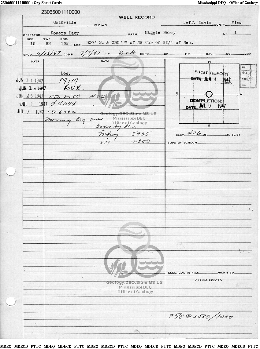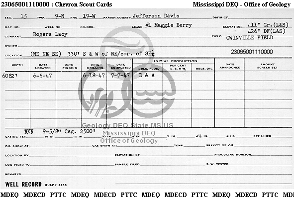 | 1 | 23065001110000 | R. LACY, INC. | MAGGIE BERRY | 1 | Dry Hole |