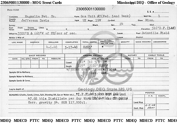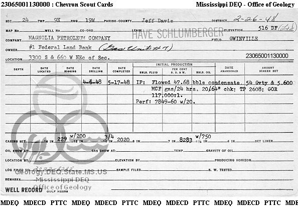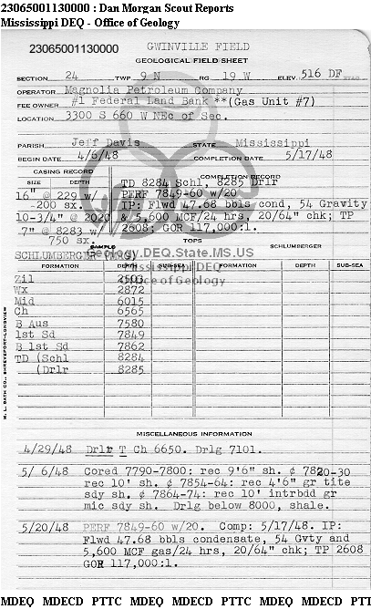 | 1 | 23065001130000 | EXXON CORPORATION -LA | GWINVILLE GU 7 | 1-L & 1-U | Production |