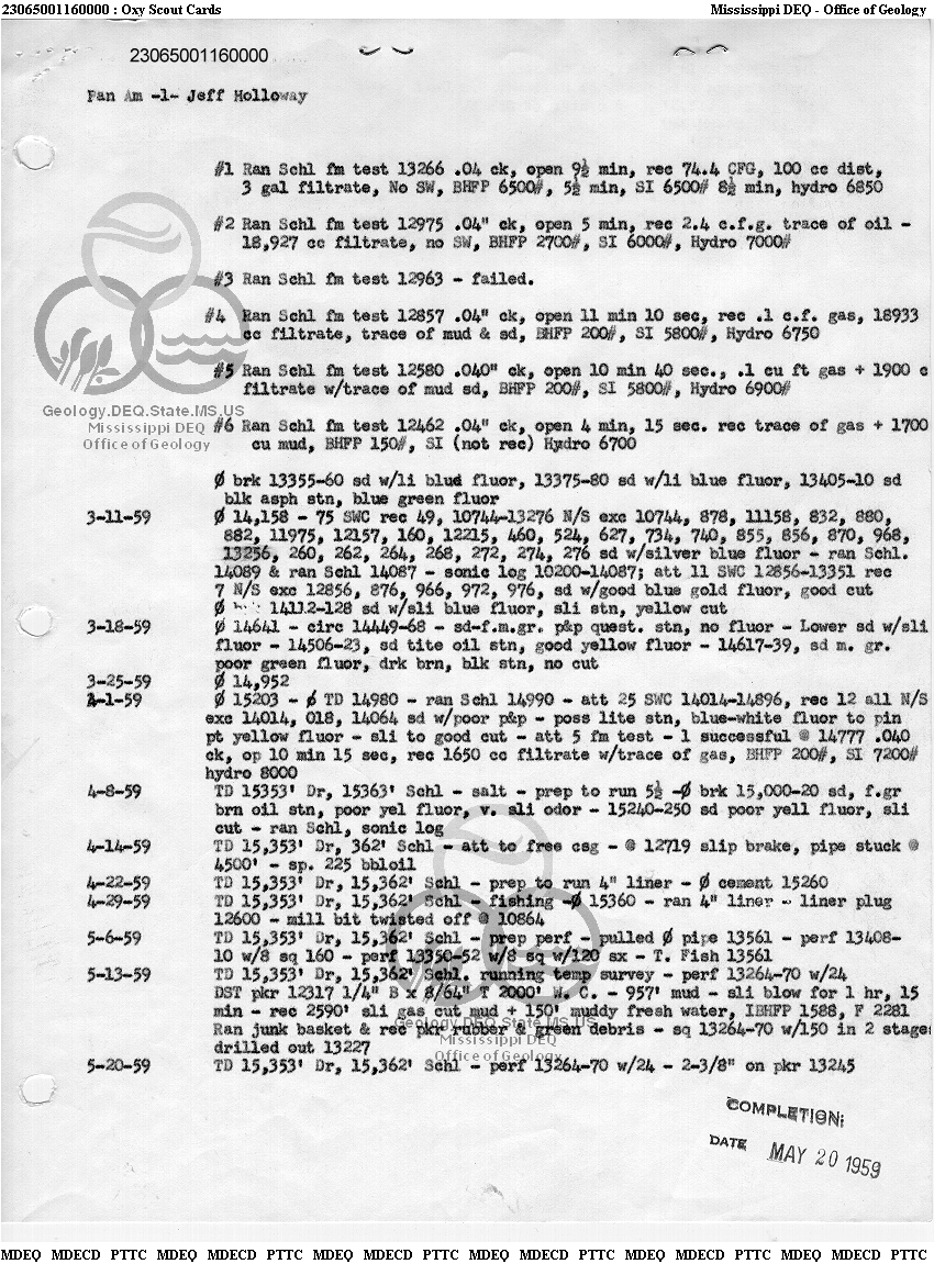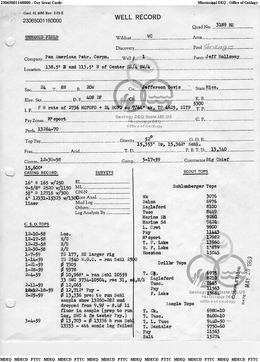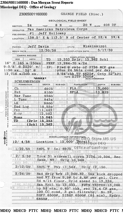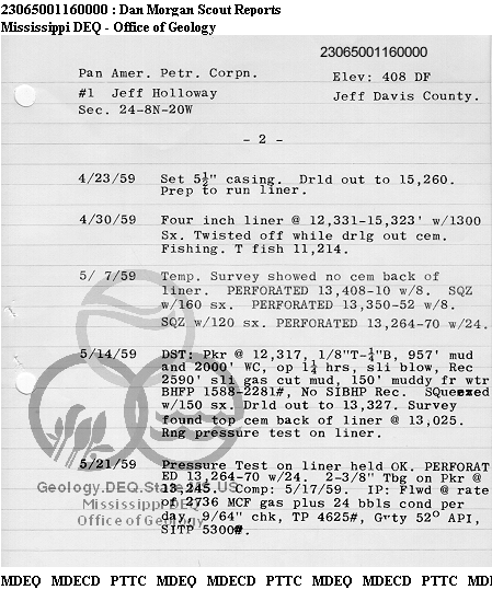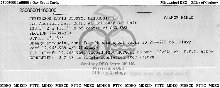 | 1 | 23065001160000 | PAN AMERICAN PETROLEUM CORP. | JEFF HOLLOWAY | 1 | Production |