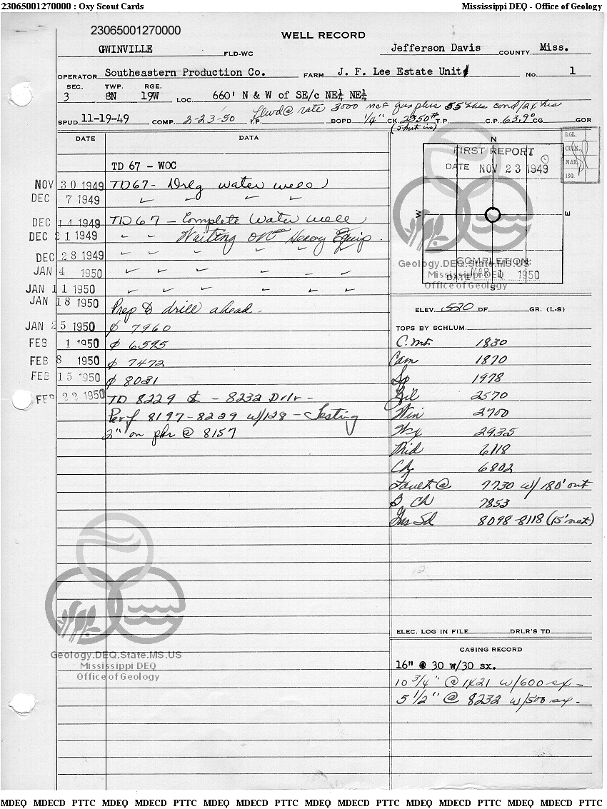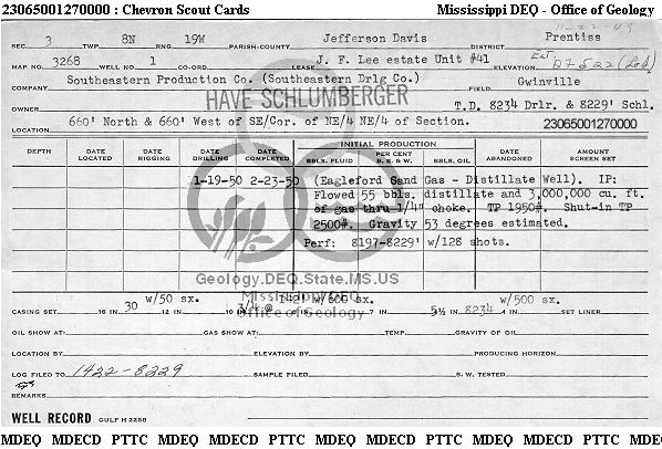 | 1 | 23065001270000 | HUMBLE OIL & REFINING CO. | GWINVILLE GU 41 | 1 | Production |