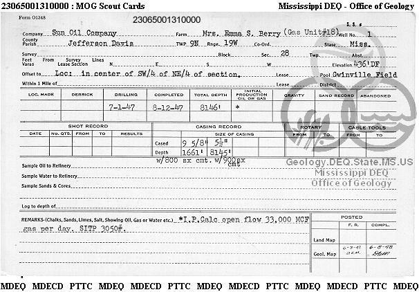 | 1 | 23065001310000 | HUMBLE OIL & REFINING CO. | GWINVILLE GU 18 | 1 | Production |