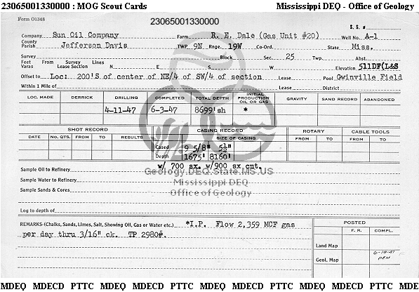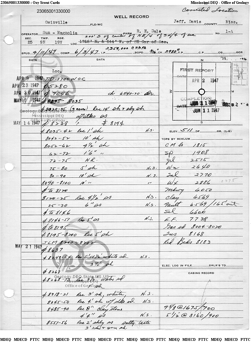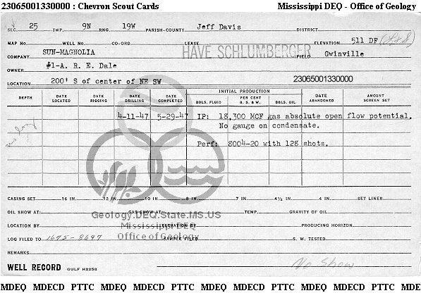| 1 | 23065001330000 | HUMBLE OIL & REFINING CO. | GWINVILLE GAS UNIT 20 | 1 | Production |