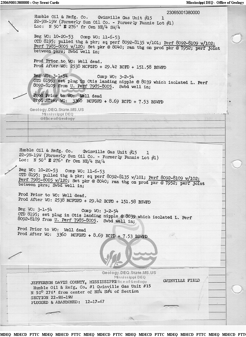 | 1 | 23065001380000 | HUMBLE OIL & REFINING CO. | GWINVILLE GU 15 | 1 | Production |