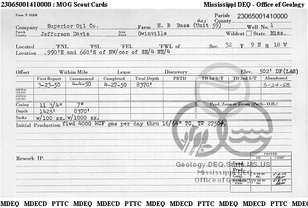 | 1 | 23065001410000 | SUPERIOR OIL CO. | GWINVILLE GU 59 | 1 | Production |
