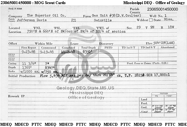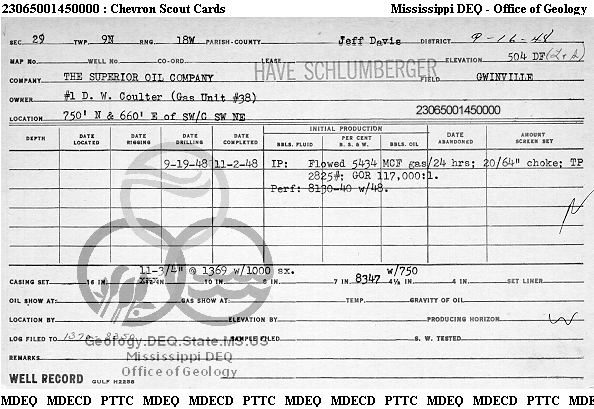 | 1 | 23065001450000 | SUPERIOR OIL CO. | GWINVILLE GU 38 | 1 | Production |