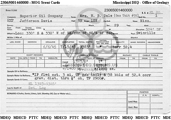 | 1 | 23065001460000 | SUPERIOR OIL CO. | GWINVILLE G.U. | 39 WELL#1 | Disposal |