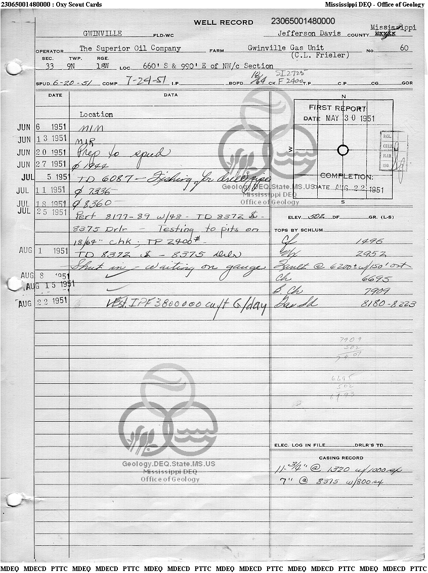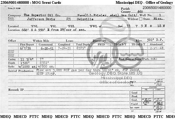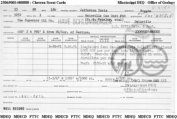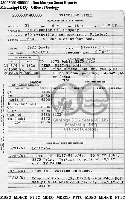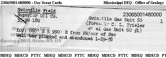| 1 | 23065001480000 | SUPERIOR OIL CO. | GWINVILLE GU 60 | 1 | Production |