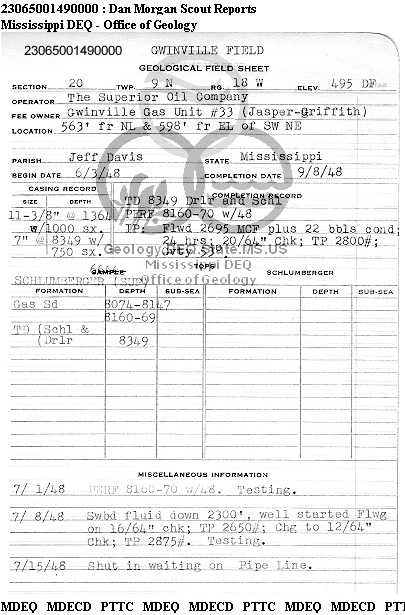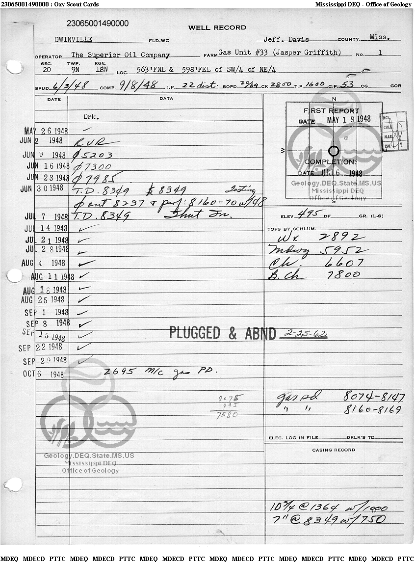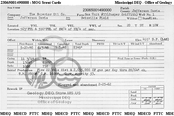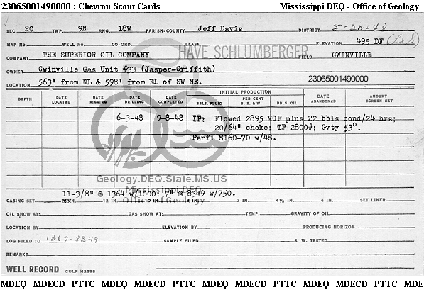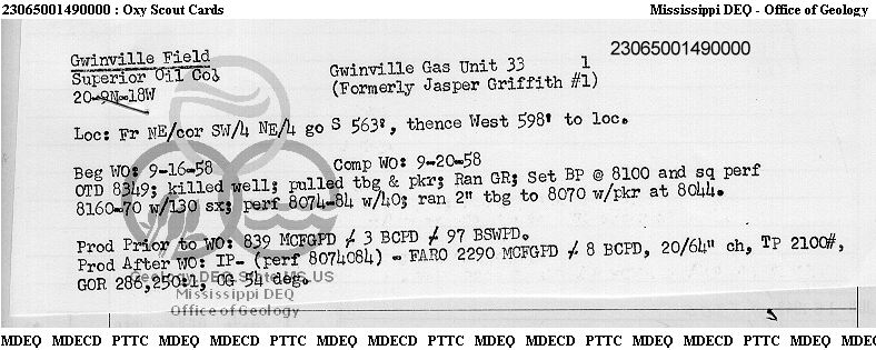 | 1 | 23065001490000 | SUPERIOR OIL CO. | GWINVILLE GU 33 | 1 | Production |