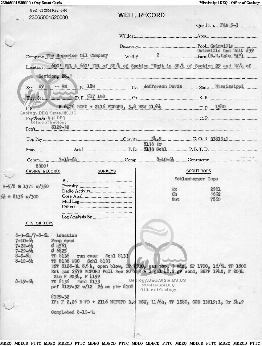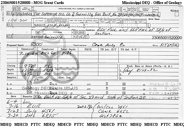 | 1 | 23065001520000 | SUPERIOR OIL CO. | GWINVILLE GU 39 | 1 | Production |