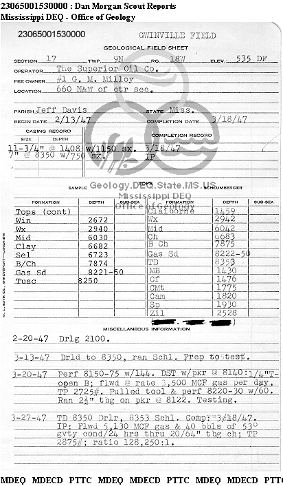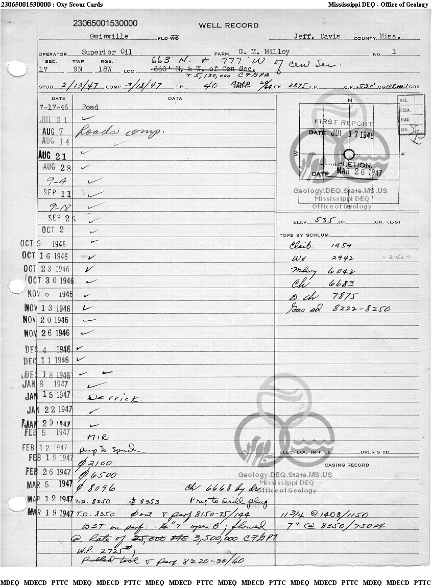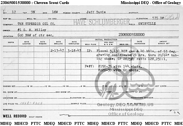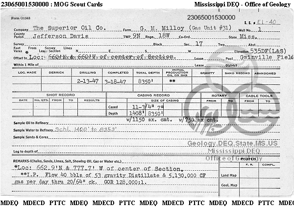 | 1 | 23065001530000 | SUPERIOR OIL CO. | GWINVILLE GU 31 | 1 | Production |