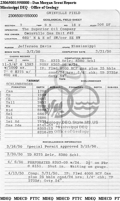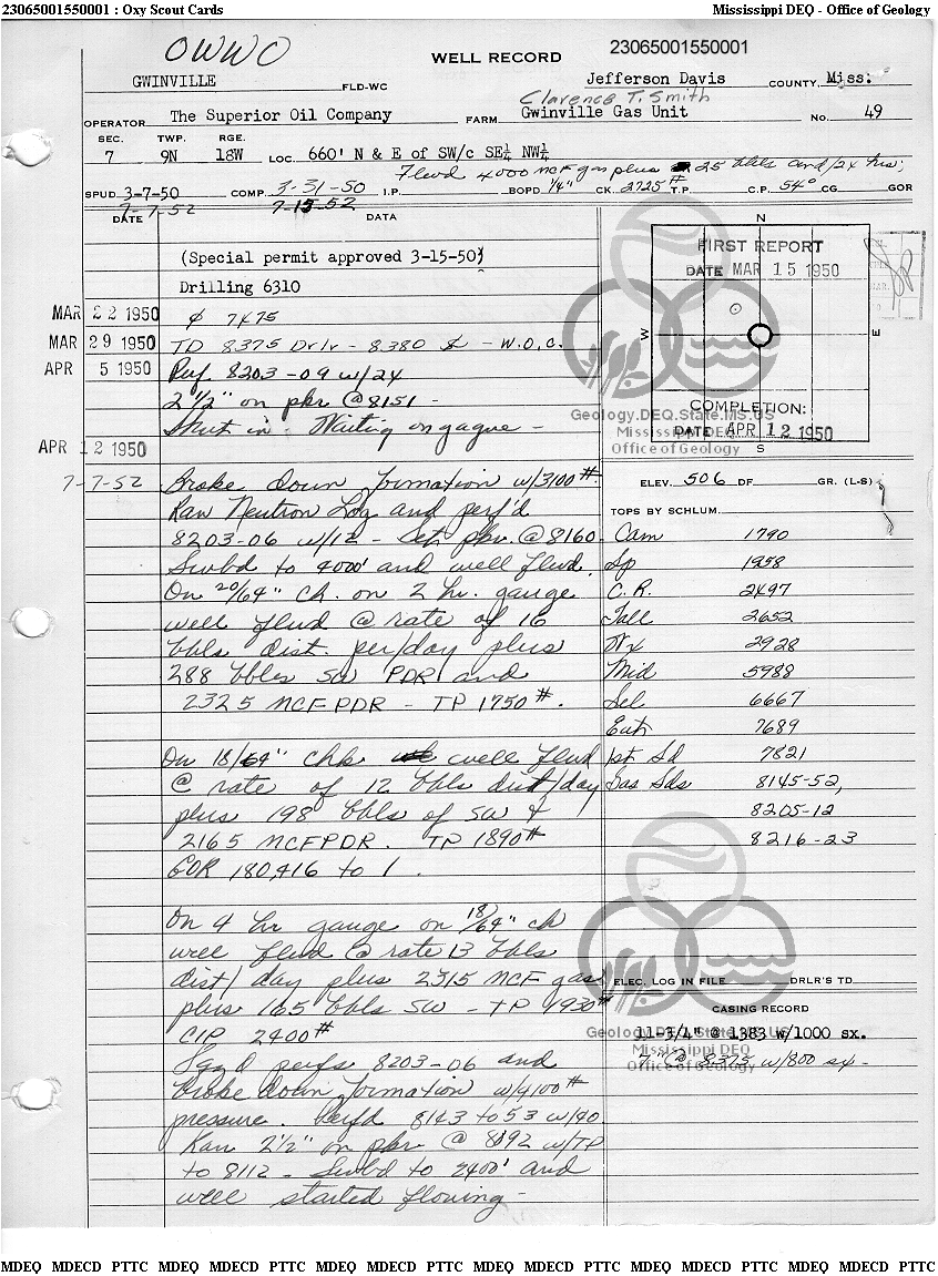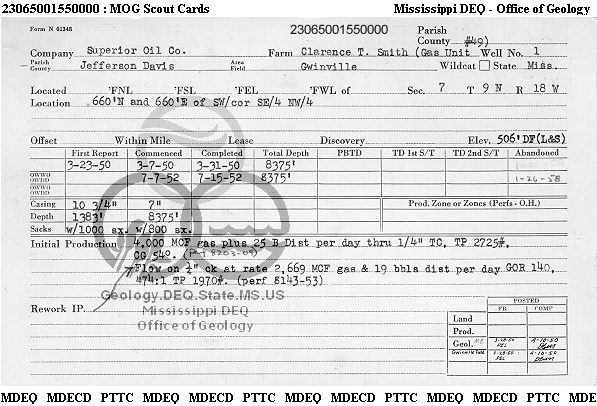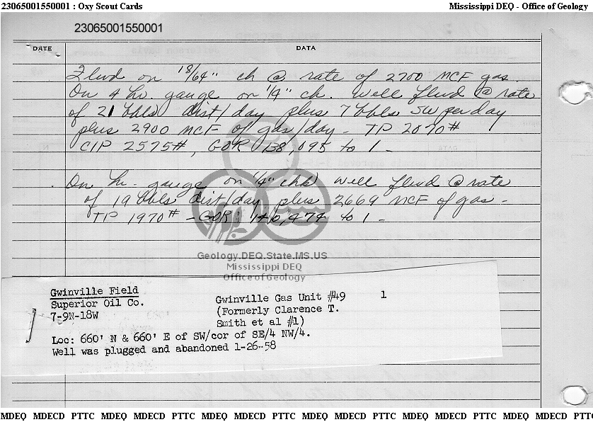 | 1 | 23065001550000 | SUPERIOR OIL CO. | GWINVILLE GU 49 | 1 | Production |