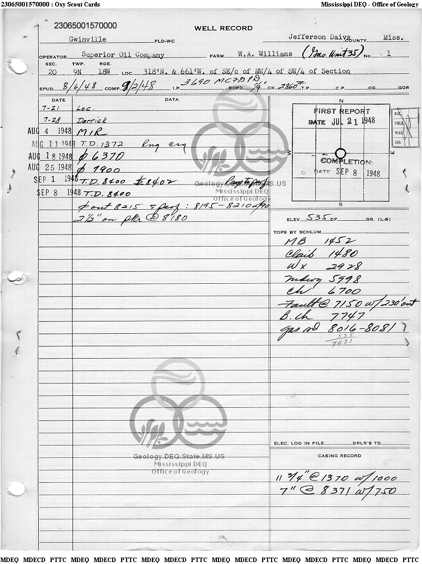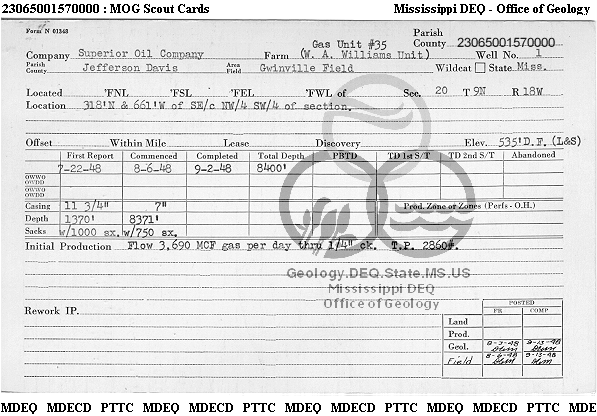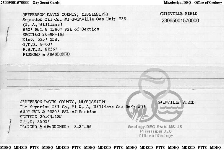 | 1 | 23065001570000 | SUPERIOR OIL CO. | GWINVILLE GU35 | 1 | Production |
