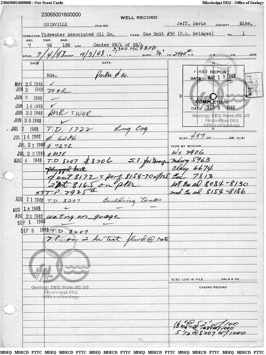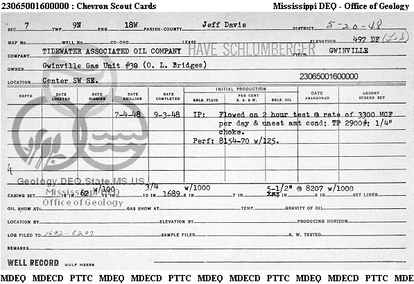 | 1 | 23065001600000 | SUPERIOR OIL CO. | GWINVILLE G U 30 | 1 | Production |