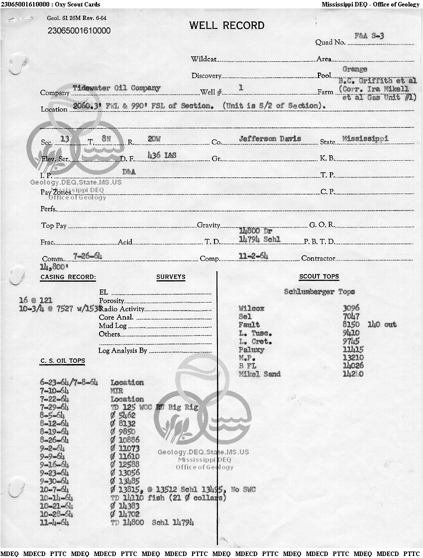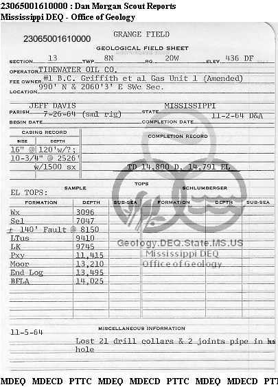 | 1 | 23065001610000 | TIDEWATER OIL CO | B C GRIFFITH ETAL | 1 | Dry Hole |