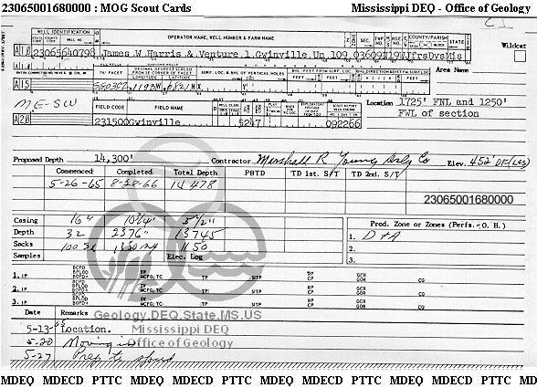 | 1 | 23065001680000 | JAMES W. HARRIS | GWINVILLE GAS UNIT 109 | 1 | Dry Hole |
