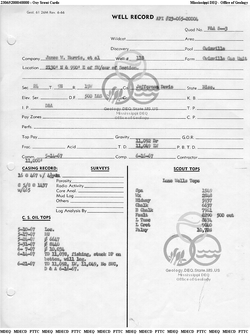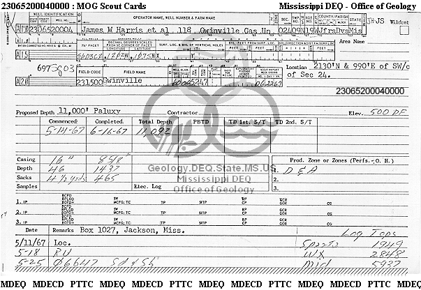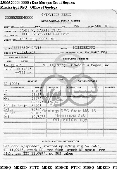 | 1 | 23065200040000 | JAMES W. HARRIS | GWINVILLE UNIT | 118 | Dry Hole |