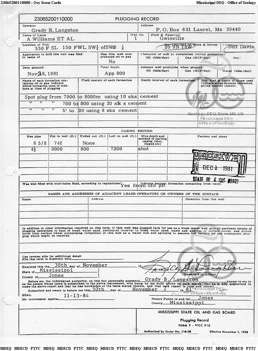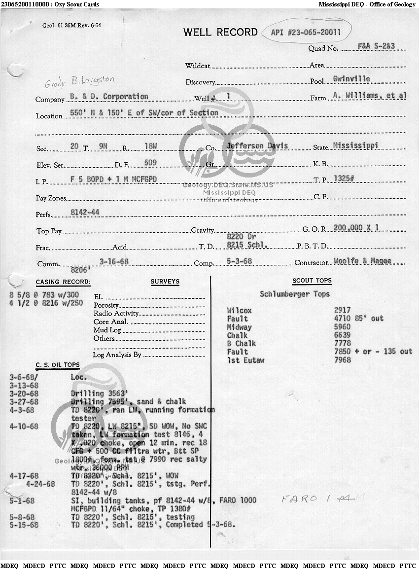 | 1 | 23065200110000 | GRADY B. LANGSTON | A WILLIAMS ETAL | 1 | Production |