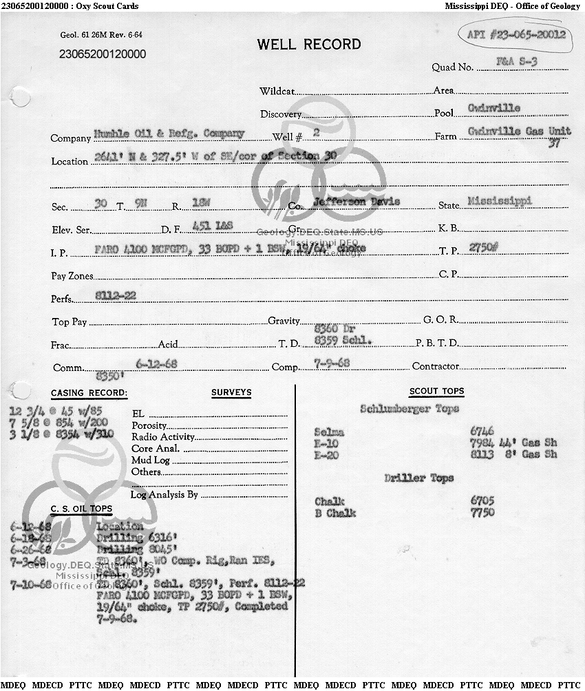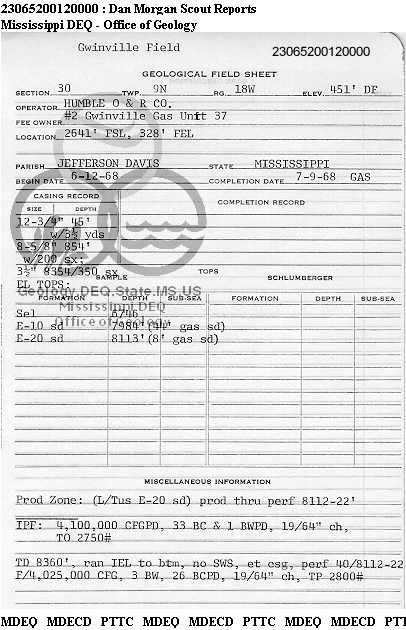 | 1 | 23065200120000 | HUMBLE OIL & REFINING CO. | GWINVILLE GAS UN 37 | 2 | Production |