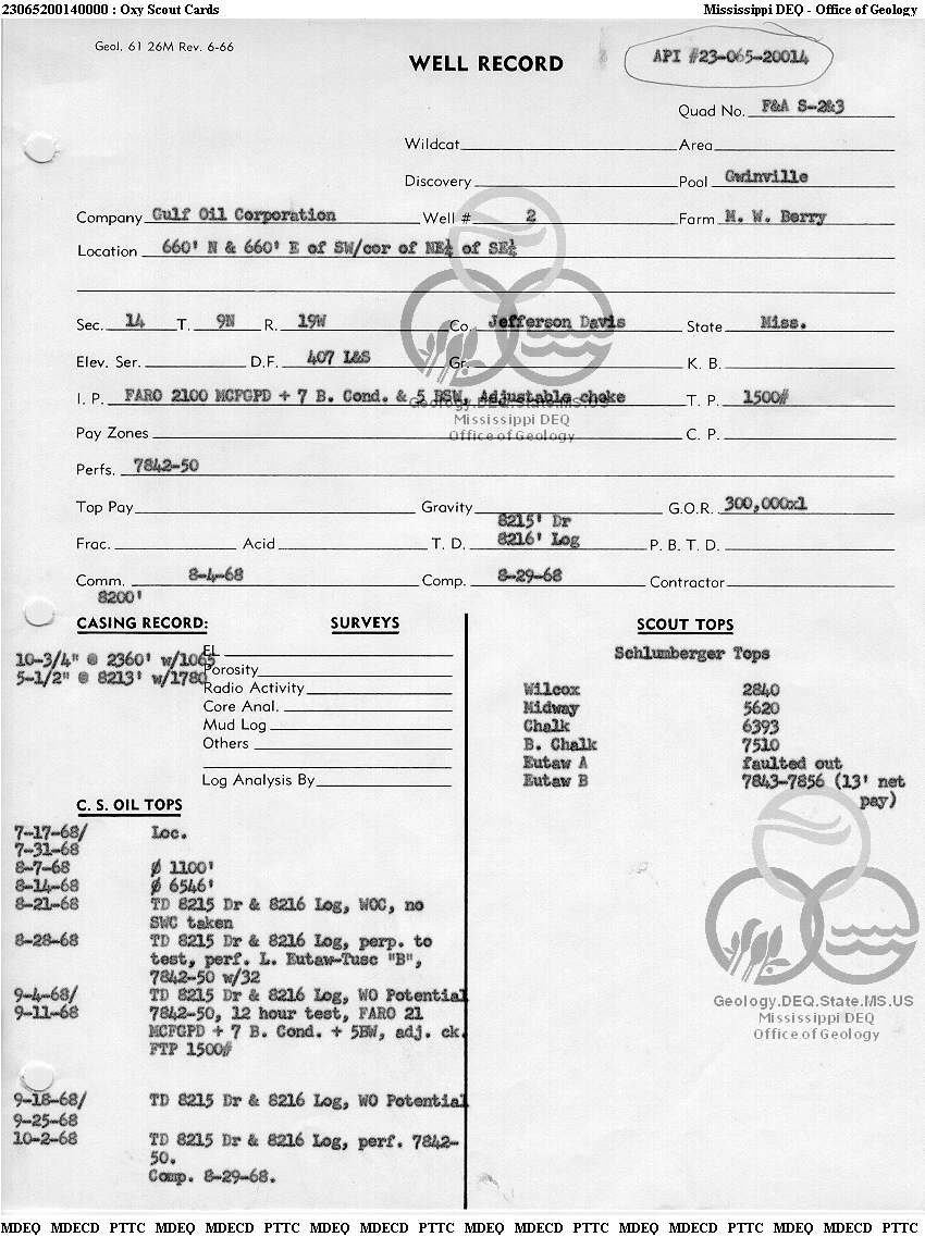 | 1 | 23065200140000 | GULF OIL CORP. | M W BERRY | 2 | Oil Production |