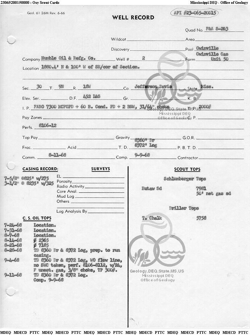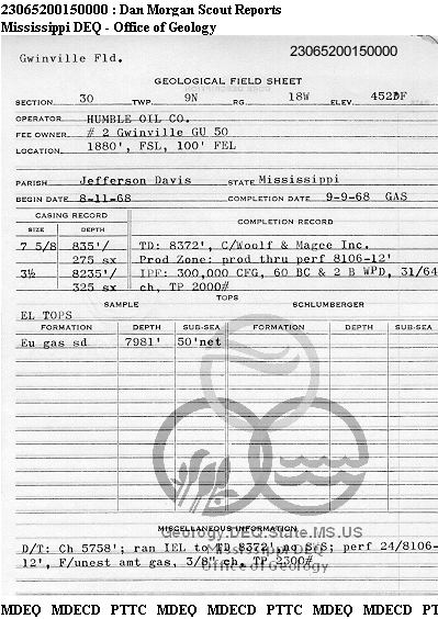 | 1 | 23065200150000 | HUMBLE OIL & REFINING CO. | GWINVILLE GAS UN 50 | 2 | Production |