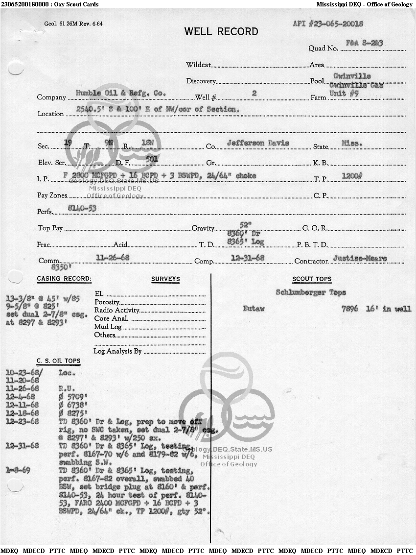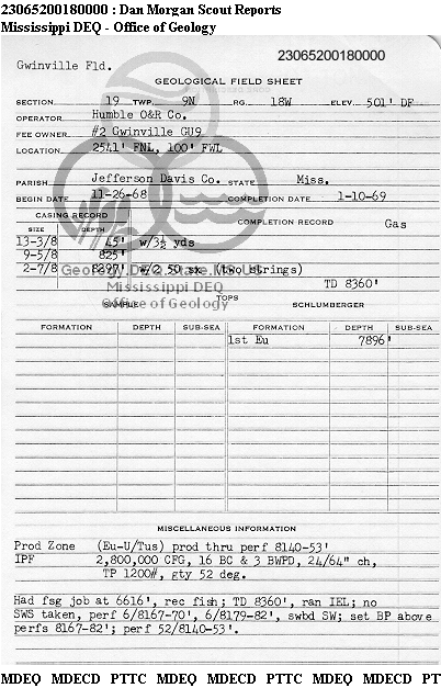 | 1 | 23065200180000 | EXXON CORPORATION -LA | GWINVILLE GAS UN 9 | 2 | Production |