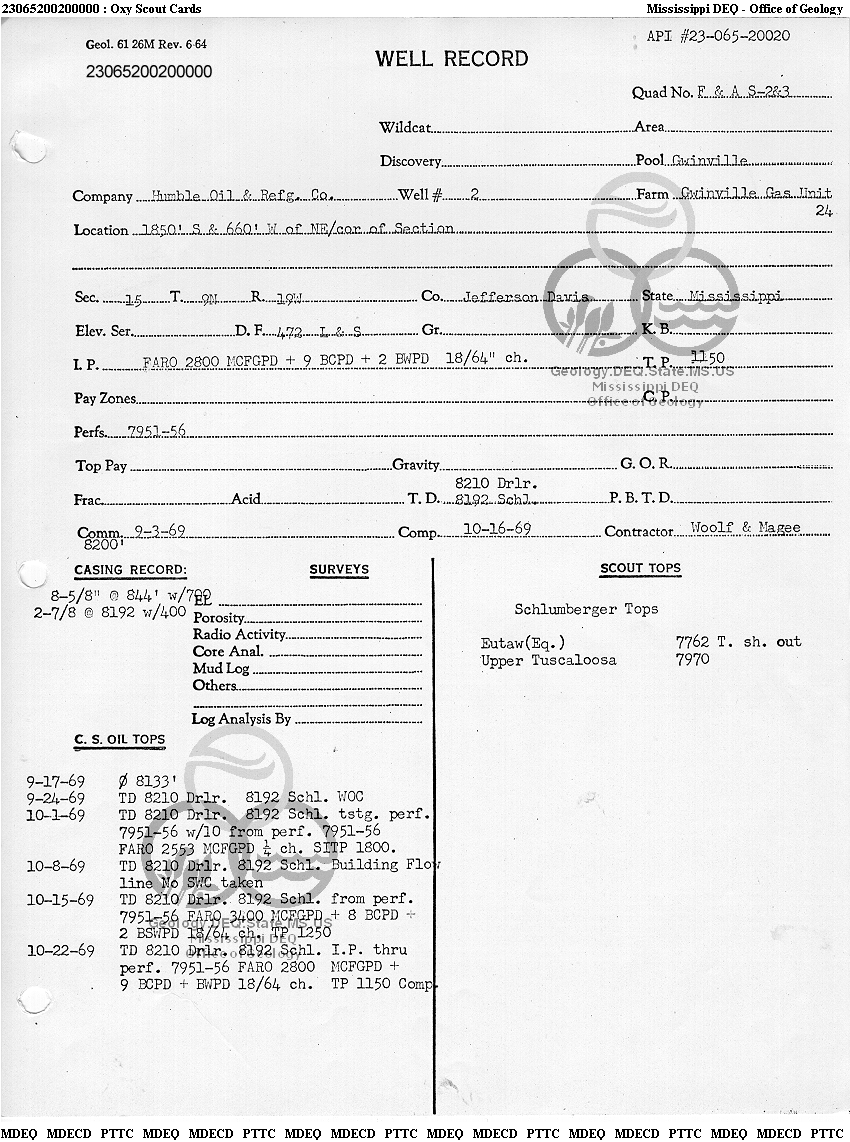 | 1 | 23065200200000 | EXXON CORPORATION -LA | GWINVILLE GU 24 | 2 | Production |