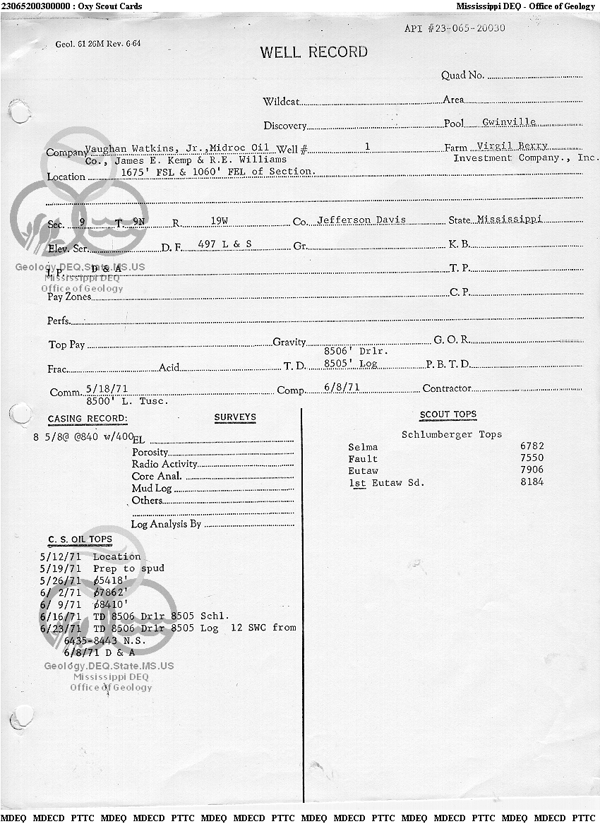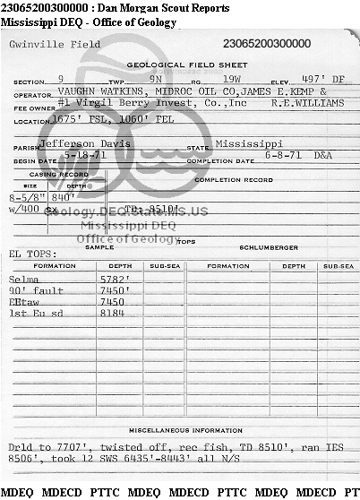 | 1 | 23065200300000 | MIDROC OIL, WATKINS,KEMP, etal | V BERRY INV CO INC | 1 | Dry Hole |