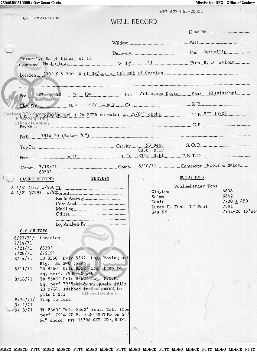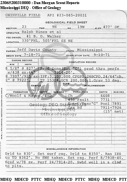 | 1 | 23065200310000 | BERRY, HOWARD E. | B. D. Walker | 3 | Production |