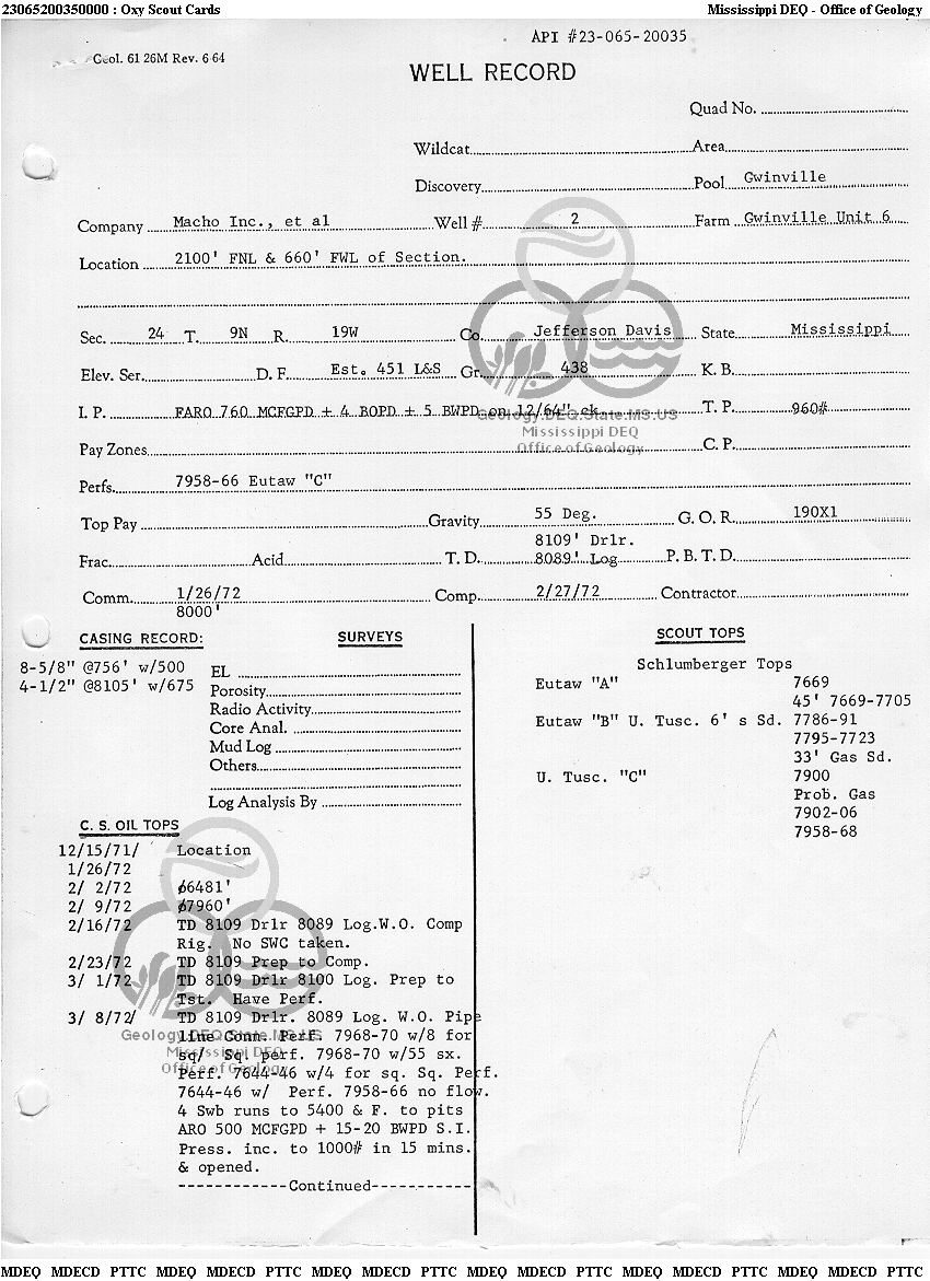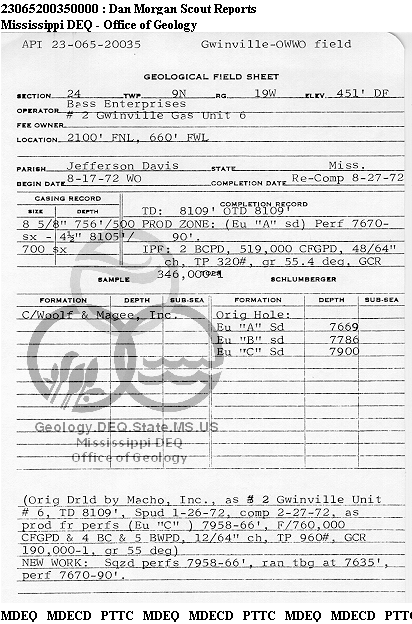 | 1 | 23065200350000 | LAUREL FUEL CO | GWINVILLE GAS UNIT 6, C. E. BERRY | 2 | Production |