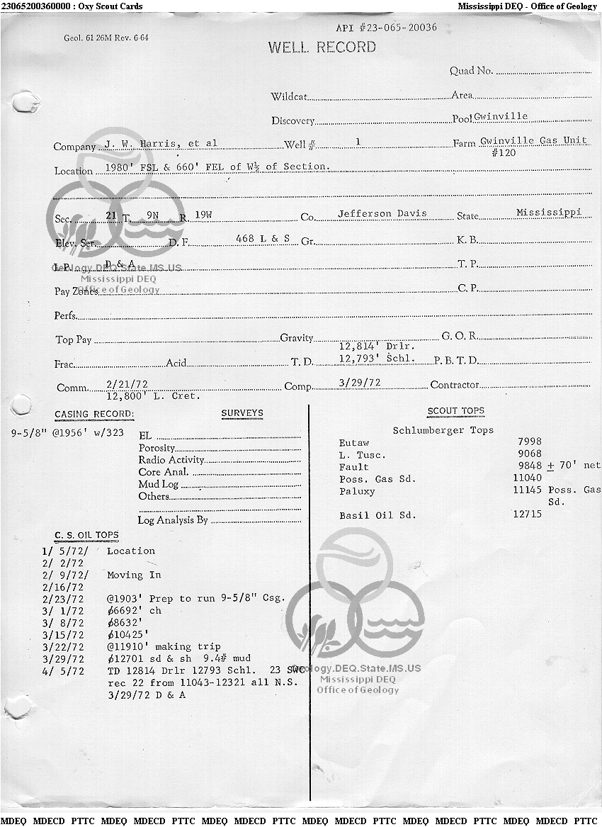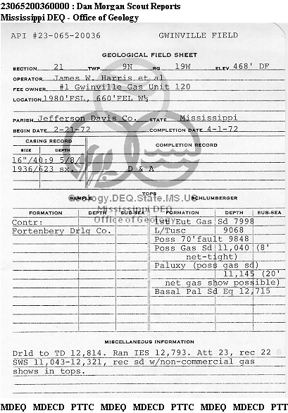 | 1 | 23065200360000 | JAMES W. HARRIS | GWINVILLE GAS | 1 | Dry Hole |