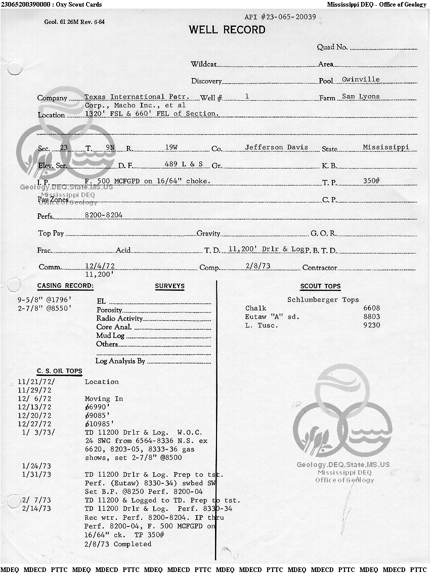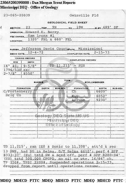 | 1 | 23065200390000 | BERRY, HOWARD E. | Sam Lyons | 1 | Production |