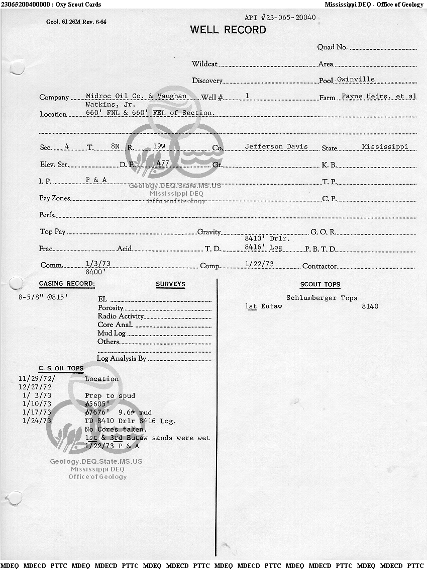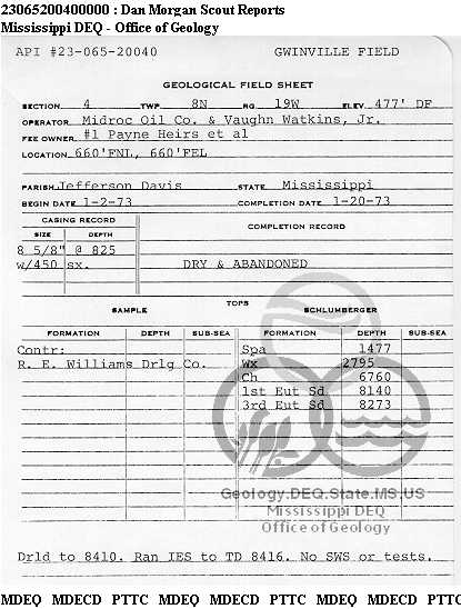 | 1 | 23065200400000 | MIDROC OPERATING COMPANY | PAYNE HEIRS ETAL | 1 | Dry Hole |