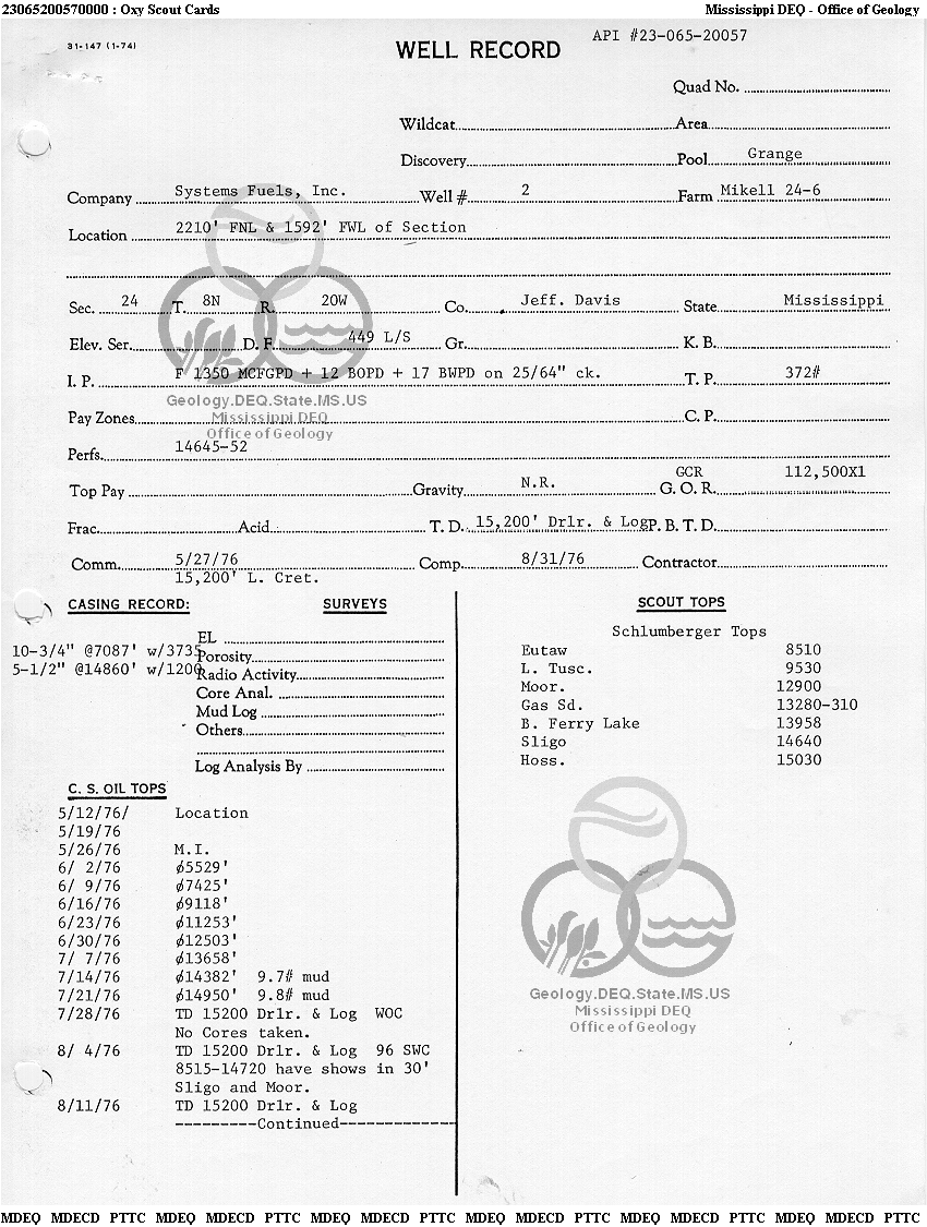 | 1 | 23065200570000 | PRUET PRODUCTION CO | MIKELL 24-6 | 2 | Production |
